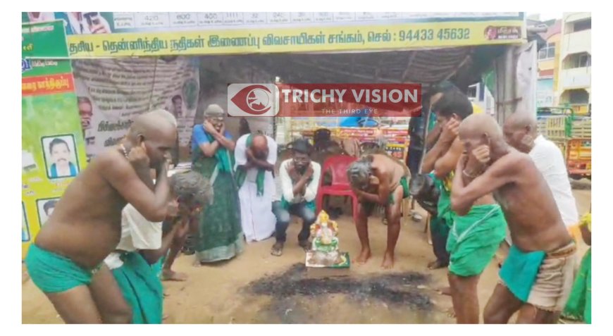 தேசிய தென்னிந்திய நதிகள் இணைப்பு விவசாயிகள் சங்க தலைவர் P. அய்யாக்கண்ணு தலைமையில் விவசாயிகள், பல்வேறு கோரிக்கைகளை வலியுறுத்தி திருச்சி அண்ணாசிலை அருகில் கோரிக்கை நிறைவேறும் வரை காத்திருப்பு போராட்டம் (18.09.2023)ந் தேதி திங்கள்கிழமை இன்று காலை துவங்கினார்கள்