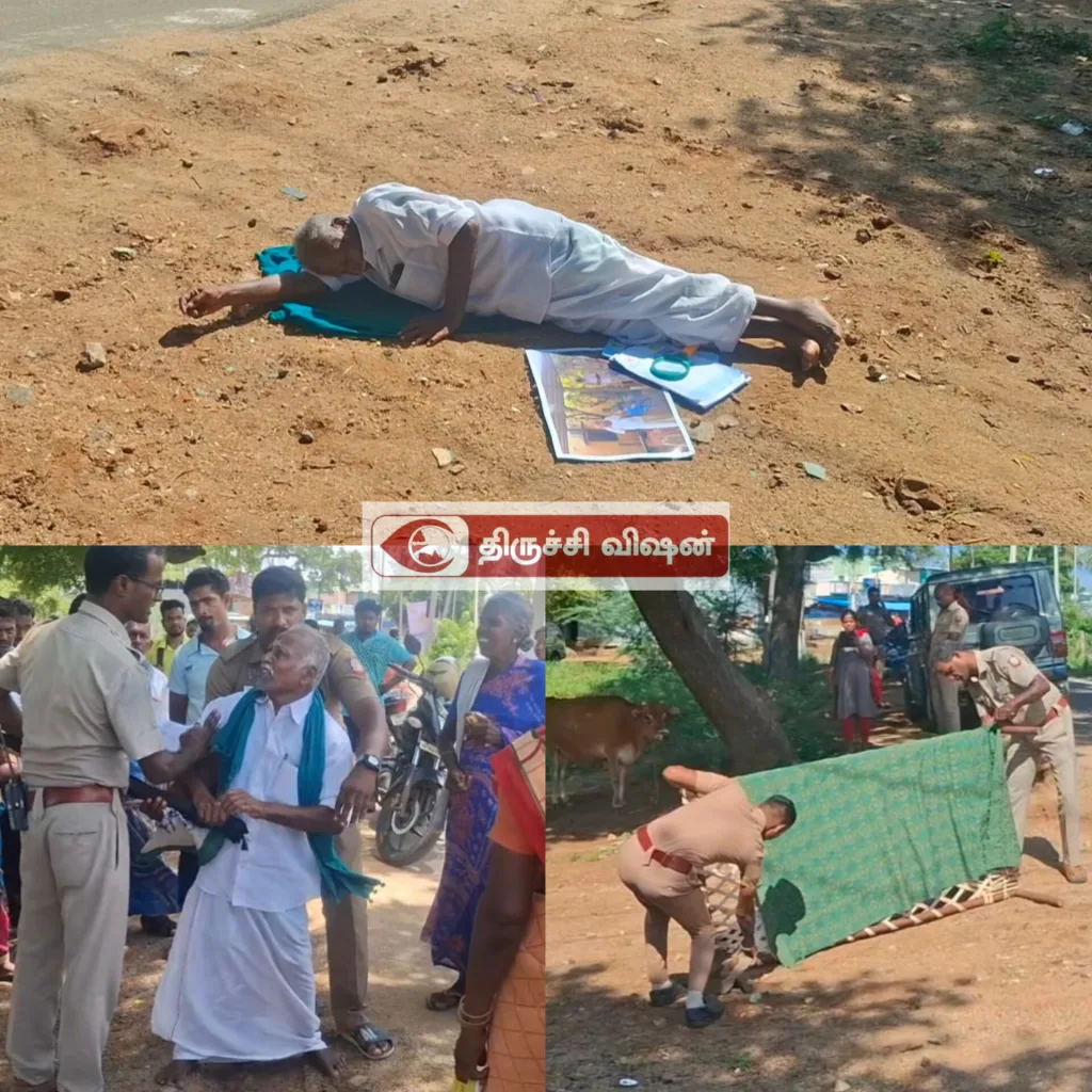 இதையடுத்து சின்னதுரை அங்கேயே தண்ணீர் அருந்தா உண்ணா நிலை இருந்து வெயிலில் தரையில் படுத்து போராட்டத்தில் ஈடுபட்டார். இதனால் அப்பகுதியில் பரபரப்பு நிலவியது.