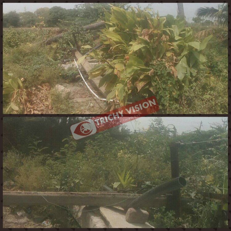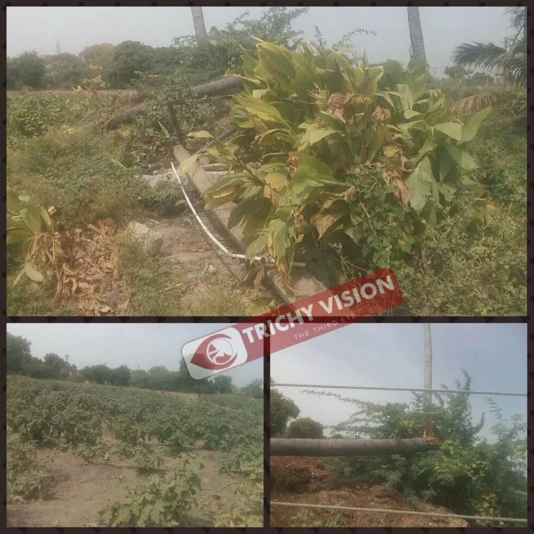 திருச்சி சென்னை தேசிய நெடுஞ்சாலையில் திருப்பட்டூர் கிராமத்தில் கடந்த வாரம் பலத்த காற்று அடித்து தென்னை மரம் மின்கம்பம் மீது விழுந்து சாய்ந்து விட்டது .உடனடியாக மின்வாரிய அலுவலகத்துக்கு தகவல் கொடுத்ததை அடுத்து மின் இணைப்பு துண்டிக்கப்பட்டது. அதன் பிறகு மின் இணைப்பும் கொடுக்கப்படவில்லை மின்சார கம்பமும் சரி செய்யப்படவில்லை என பொதுமக்கள் குற்றம்சாட்டியுள்ளனர்.