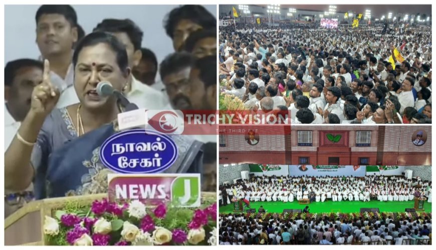 இந்த பிரச்சார பொதுக்கூட்டத்தில் தேமுதிக பொதுச்செயலாளர் பிரேமலாதா விஜயகாந்த் பேசுகையில்….. இது ஒரு மாபெரும் பொதுக்கூட்டம் என்று தான் சொன்னார்கள். ஆனால் இது மாபெரும் வெற்றி மாநாடு என்கிற அளவில் உள்ளது. திருச்சி என்றாலே திருப்பு முனையை ஏற்படுத்தும் இடம். இதே திருச்சியில் மகளிர் மாநாடு நடத்திய போது மலைக்கோட்டை மஞ்சள் கோட்டையாக தே.மு.க.திவினர் மாற்றி இருந்தனர். நான் கேப்டன் மறைவிற்கு பிறகு பங்கேற்கும் முதல் நிகழ்ச்சி. என்னால் கலந்து கொள்ள முடியவில்லை என்றாலும் காலத்தின் கட்டாயம். புரட்சி தலைவர் – புரட்சி தலைவி – புரட்சி கலைஞர் மூன்று பேரும் திரைத்துறையில் இருந்து மக்களுக்குகாக சேவை செய்ய வந்தவர்கள். மாற்று கட்சியை சேர்ந்தவர்கள் ரவுடிசியத்தை உருவாக்கி நாட்டிற்கு தலை குனிவை ஏற்படுத்தி வருகிறது.