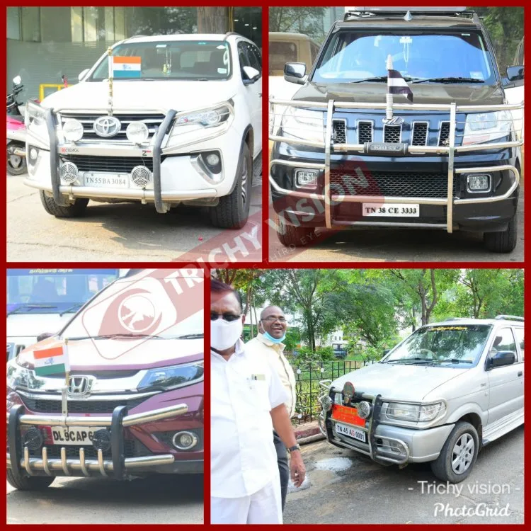 ஆனால் திருச்சி மாவட்டத்தில் உள்ள இரண்டு அமைச்சர்கள், மாவட்ட ஆட்சியர்கள் உள்ளிட்டோர் முறையாக உத்தரவை கடைபிடித்து பம்பர்களை அவர்கள் அகற்றி விட்டனர். அமைச்சர்கள் ஆட்சியர்கள் தாண்டி இவர்கள் தொடர்ந்து நான்கு சக்கர வாகனங்களில் பொருத்தி இருப்பது பொதுமக்களிடையே பெரும் கேள்வி எழுப்பியுள்ளது.