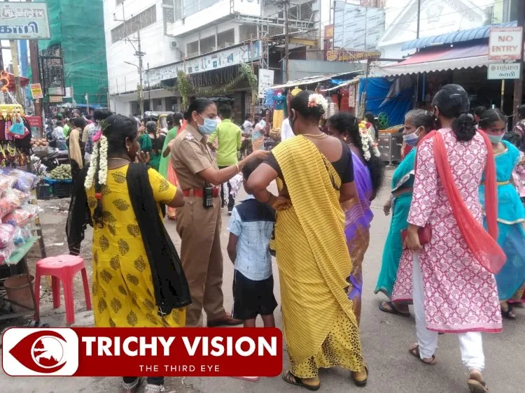 திருச்சி மாநகர காவல்துறை ஆணையர் லோகநாதன் உத்தரவின் பேரில் முகக் கவசம் அணியாமல் செல்பவர்கள் மீது அபதாரம் மற்றும் அவர்களுக்கு அறிவுரை வழங்கி வருகின்றனர். திருச்சி மாநகர காவல் துறையின் பணிகள் இந்த கொரோனா ஊரடங்கு காலத்தில் மிகச் சிறப்பாக செய்து வருகின்றனர். பொதுமக்களுக்கு தங்களால் முயன்ற வித்தியாசமான முறையில் எப்படி எல்லாம் விழிப்புணர்வு ஏற்படுத்த முடியுமோ அப்படியெல்லாம் எளிய வகையில் விழிப்புணர்வை தொடர்ந்து ஏற்படுத்திக் கொண்டே வருகின்றனர்.