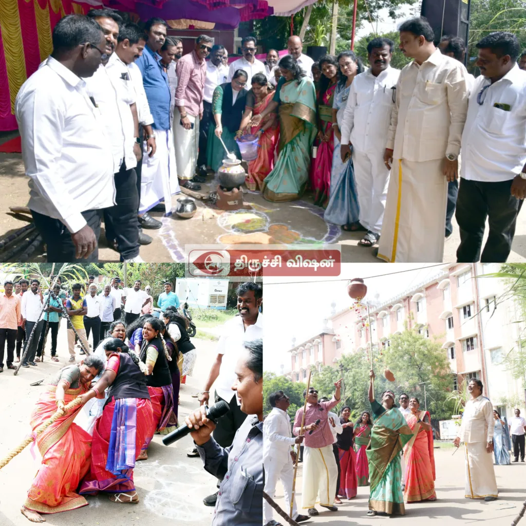 மாண்புமிகு நீதிபதிகள் திருமதி கார்த்திகா, திருமதி விஜயா ஆகியோர் பொங்கல் பானைக்கு சூடம் ஏற்றி வைத்தனர் மாண்புமிகு நீதிபதி திரு கார்த்திகா அவர்கள் பானை உடைத்தல் போட்டியில் கலந்துகொண்டு பானை உடைத்து பரிசை வென்றார் என்பது சிறப்பம்சமாகும் விழாவில் சக நீதிபதிகளும் கலந்து கொண்டனர்.