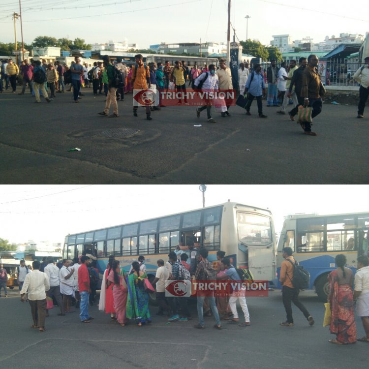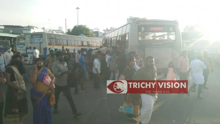 மேலும் திருச்சியிலிருந்து மதுரை செல்லக்கூடிய பேருந்துகள் குறைவான அளவில் இயக்கப்பட்டதால் பேருந்து பயணிகள் நீண்ட நேரம் காத்திருக்க வேண்டிய சூழல் ஏற்பட்டது. மேலும் திருச்சியில் இருந்து மதுரைக்கு செல்வதற்கு பேருந்துகளில் இடம் பிடிப்பதற்கு பயணிகள் முண்டியடித்துக்கொண்டு படிக்கட்டில் தொற்றிக் கொண்டு பெரும் சிரமத்திற்கு ஆளாகினர்.