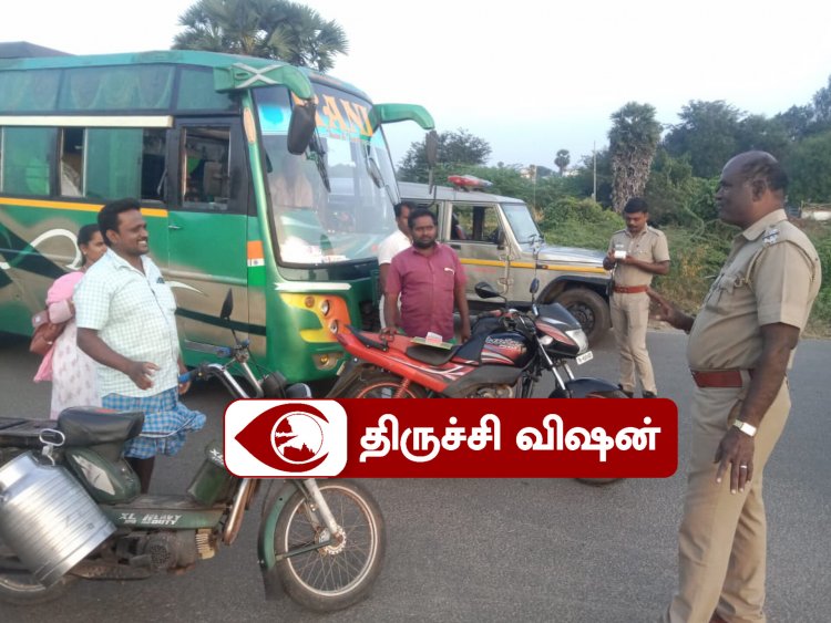 திருச்சி மாவட்டம் துவரங்குறிச்சியில் திருச்சி மதுரை தேசிய நெடுஞ்சாலை துவரங்குறிச்சி பிரிவு சாலையில் துவரங்குறிச்சி காவல் உதவி ஆய்வாளர் துளசி, காவலர் சசிகுமார் வாகன சோதனையில் ஈடுபட்டனர். அப்போது இருசக்கர வாகன ஓட்டிகள் தலைக்கவசம் அணியாமல் வந்தவர்களுக்கும்,
