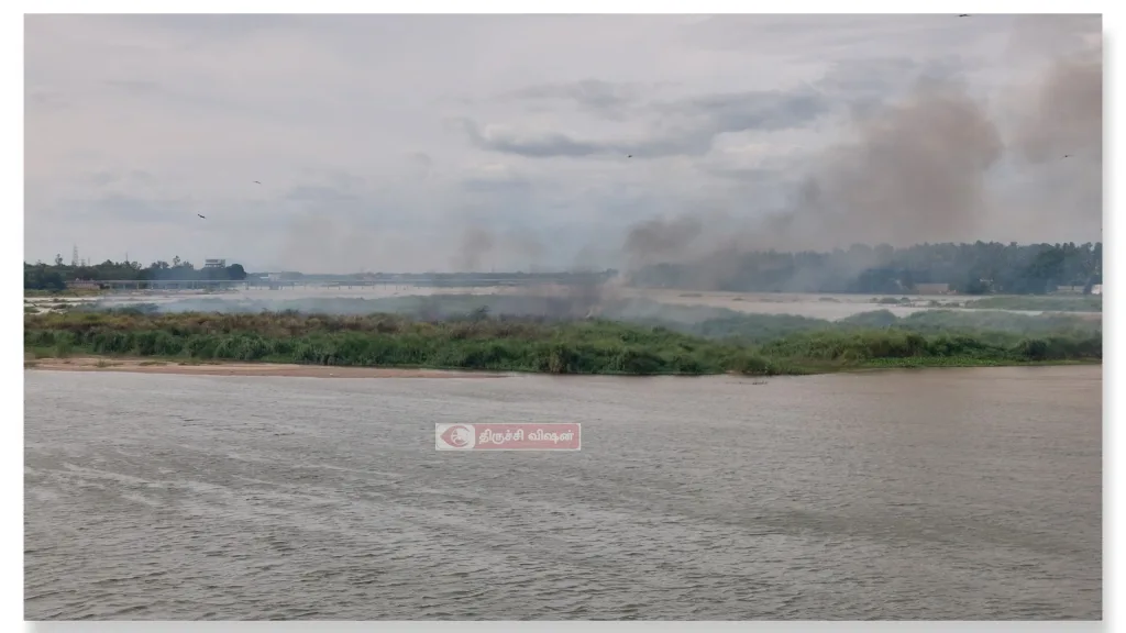 திருச்சி காவிரி ஆற்றில் நடுவே தீ