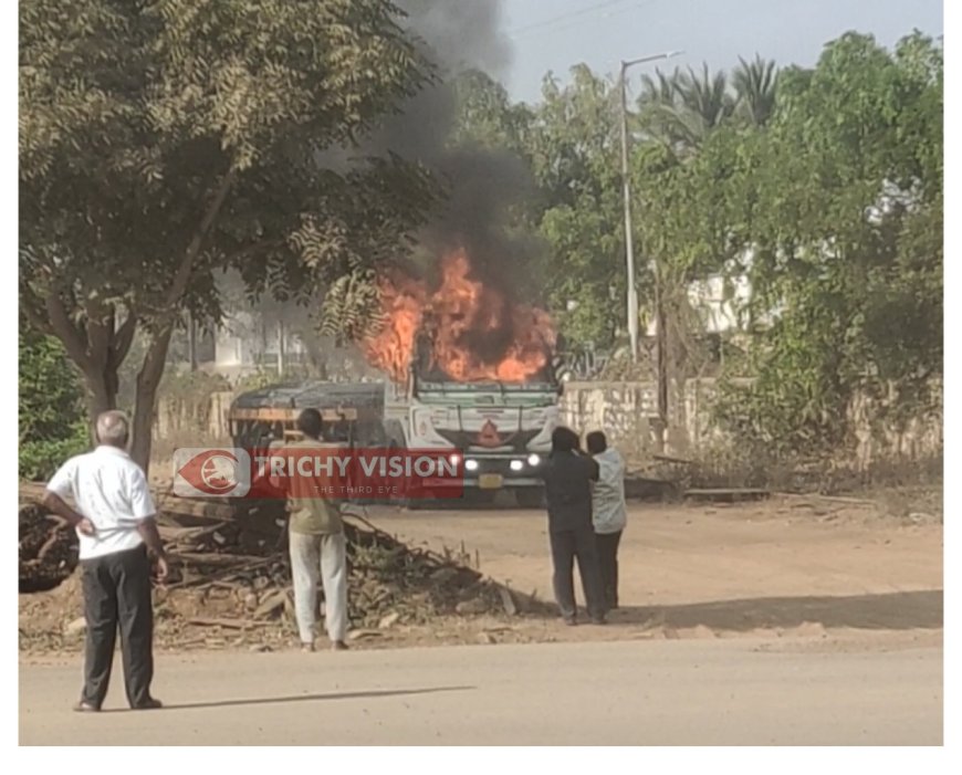 திருச்சி கே.கே.நகர் பகுதியில் செயல்பட்டு வரும் மத்திய அரசு நிறுவனமான (sail yard ) சைல் யார்ட்-க்கு, ராஜஸ்தான் மாநிலம் நாக்குபூரில் இருந்து கம்பி ஏற்றி வந்த லாரி திடீரென தீ பற்றி எரிந்தது. இதனை அறிந்த அங்கிருந்த ஊழியர்கள் தீயணைப்புத் துறையினருக்கு தகவல் தெரிவித்தனர்.