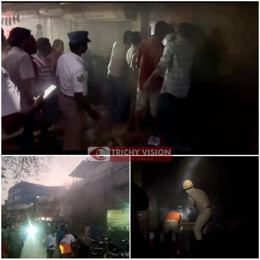 இதற்கிடையில் விபத்தினால் புகை மூட்டங்கள் வணிக வளாகம் முழுவதும் பரவியதைத் தொடர்ந்து வணிக வளாகத்தில் உள்ள மற்ற கடை மற்றும் நிதி நிறுவன ஊழியர்கள் அங்கிருந்து தப்பித்தால் போதும் என அருகில் உள்ள வணிக வளாகத்தில் தாண்டி தப்பித்தனர். இந்த நிலையில் சம்பவ இடத்திற்கு நவல்பட்டு, துப்பாக்கி தொழிற்சாலை, பிஹெச்எல் இரண்டு தீயணைப்பு வாகனம் என மொத்தம் 5 தீயணைப்பு வாகனம் மற்றும் ஒரு தண்ணி லாரி 6 வாகனங்கள் தீயை அணைக்கும் முயற்சியில் ஈடுபட்டு வருகிறது. இச்சம்பவம் பற்றி திருவெறும்பூர் மின்சார வாரிய அலுவலர்களுக்கு தகவல் கிடைத்ததும் உடனடியாக திருவெறும்பூர் மின்சார வாரிய ஊழியர்கள் அப்பகுதியில் மின்சார விநியோகத்தை நிறுத்தியுள்ளனர்.