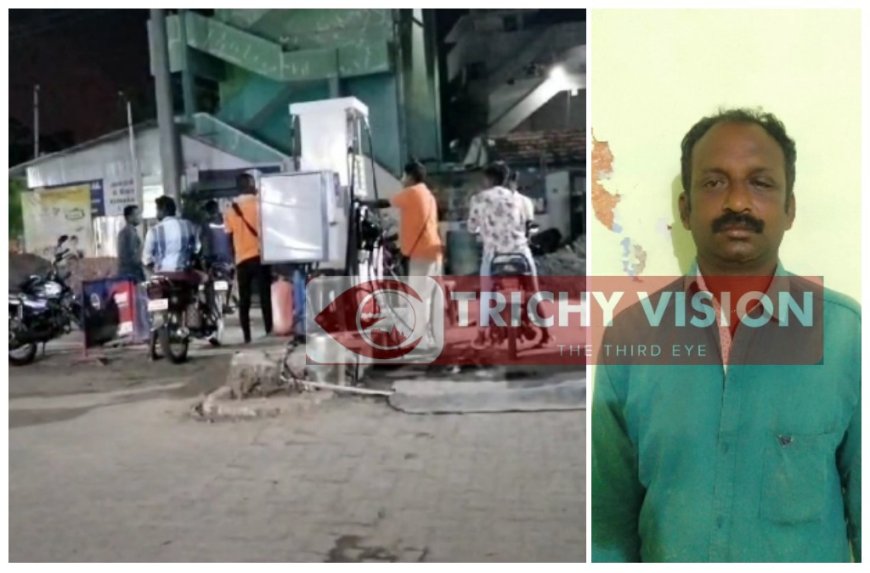திருச்சி மாவட்டம் தொட்டியம் ஊராட்சி ஒன்றிய அலுவலகம் எதிரே அமைந்துள்ள தனியார் பெட்ரோல் பங்கில் கேசியராக அதே பகுதியை சேர்ந்த சரவணன் (35) வேலை பார்த்து வருகிறார். இவருடன் உதவியாளராக கனகநாதன் என்பவரும் வேலை செய்து வந்துள்ளார்.