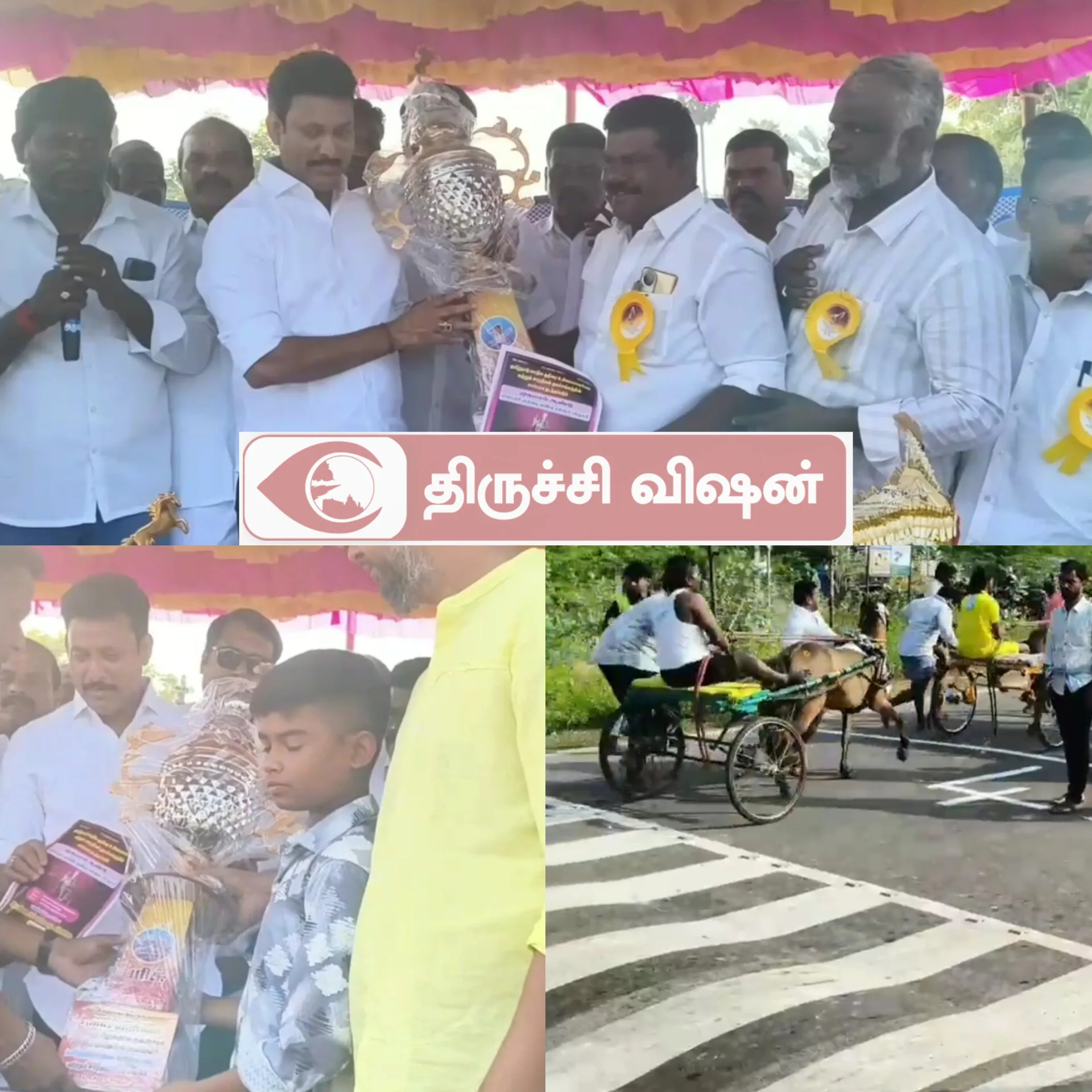 போட்டியில் சீறிப்பாய்ந்து வெற்றி பெற்ற குதிரைகளின் உரிமையாளர்களுக்கு அமைச்சர் அன்பில் மகேஸ் பொய்யாமொழி கோப்பைகளையும் ரொக்க பரிசு தொகையினையும் வழங்கி பாராட்டினார்.