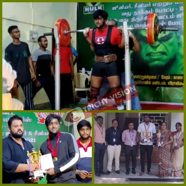 அதில் பிஷப் ஹீபர் கல்லூரி வரலாற்றுத் துறை இரண்டாம் ஆண்டு மாணவர் நவீன் 588 கிலோ எடையை தூக்கி முதலிடம் பெற்றார். வலுதூக்கும் சங்கத்தினர், மாணவனை பாராட்டும் விதத்தில் தங்கப்பதக்கமும் , கோப்பையும் சான்றிதழும் கொடுத்து பாராட்டினர். முதலிடம் பெற்ற மாணவனை, வரலாற்றுத் துறை மாணவர்கள் வாழ்த்தியுள்ளனர்.