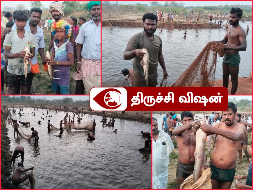 திருச்சி மாவட்டம், மணப்பாறை அருகே பொய்கைப்பட்டி ஊராட்சி ஆவிக் காரன்பட்டி ஆவிக்குளத்தில்சுமார் 19 ஏக்கர் பரப்பளவில் அமைந்துள்ள குளத்தில் இன்று விடியற்காலை 6 மணிக்கு மீன் பிடித்திருவிழா 35 ஆண்டுகளுக்கு பின் நடைபெற்றது.