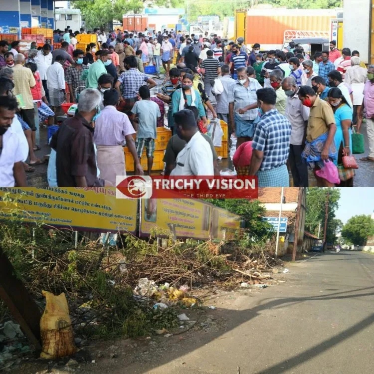 கொரோனா தொற்று பரவலை கட்டுப்படுத்தும் விதமாக திருச்சி மாவட்ட நிர்வாகம் பல்வேறு நடவடிக்கைகளை மேற்கொண்டு வருகிறது. இதன் ஒரு பகுதியாக பொதுமக்கள் அதிகம் கூடும் காய்கறி மற்றும் இறைச்சி மார்க்கெட்டை இடமாற்றம் செய்து உத்தரவிட்டிருந்தது.