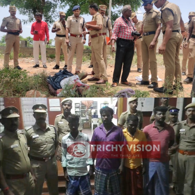 இச்சம்பவம் குறித்து திருவெறும்பூர் போலீசார் வழக்கு பதிவு செய்து திருவெறும்போடு டிஎஸ்பி அறிவழகன் மேற்பார்வையில் திருவெறும்பூர் இன்ஸ்பெக்டர் சந்திரமோகன், சப் இன்ஸ்பெக்டர்கள் சதீஷ், பூபதி காவலர் இன்பமணி, அருள்மொழிவர்மன், அறிவழகன், இளையராஜா ஆகியோர் கொண்ட தனிப்படையினர் எதிரிகளை தேடி வந்த நிலையில் நேற்று மதியம் வேங்கூர் பூசத்துரை  பஸ் ஸ்டாப் அருகே வந்த போது அவர்களை 5 பேரையும் மடக்கி பிடித்து கைது செய்ததோடு கொலைக்கு பயன்படுத்திய இருசக்கர வாகனம் அரிவாள் மற்றும் கத்தி ஆகியவற்றை பறிமுதல் செய்தனர்.