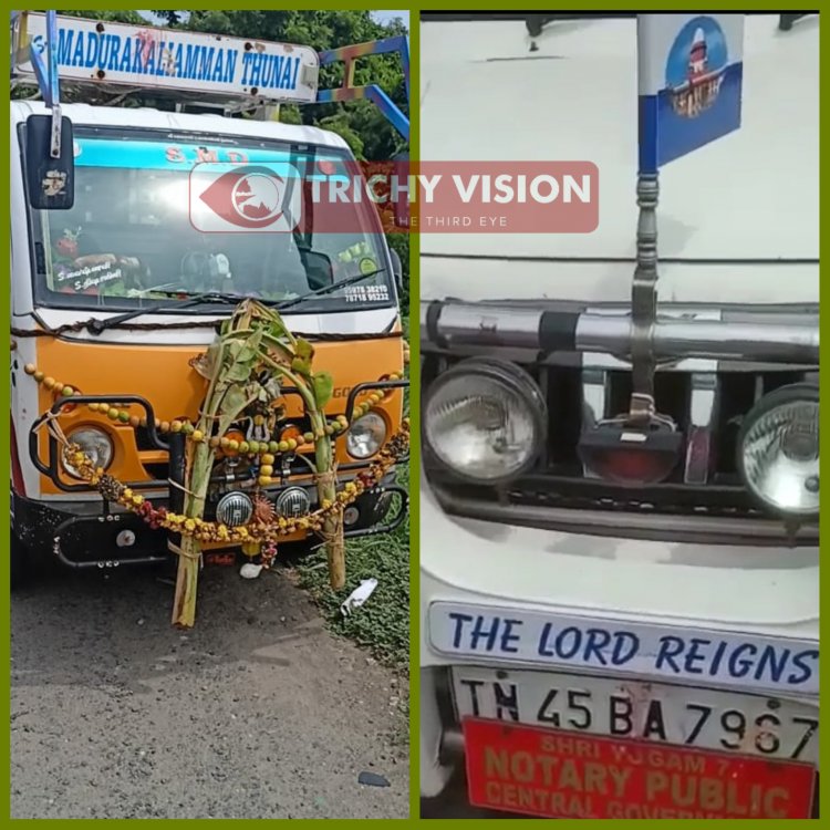நேற்று (19.10.21) திருச்சி மாவட்டம் முசிறி – குளித்தலை பெரியார் பாலத்தில் போக்குவரத்து போலீசார் வாகன சோதனையில் ஈடுபட்டிருந்தபோது, அங்கு வந்த TN 48 AR 3700 TATA Ace வாகனத்தை சோதனை செய்ததில், அதை ஓட்டிய வாகன ஓட்டுநர் உரிமம் இன்றி வாகனத்தை ஓட்டி உள்ளார். அந்த வாகனத்தின் முன்பு பம்பர் பொருத்தப்பட்டிருந்தது. வாகனத்தை ஓட்டுநர் உரிமம் இன்றி ஓட்டியதற்கு ஓட்டுனர் மீது மோட்டார் வாகனச் சட்டத்தின்படி வழக்குப்பதிவு செய்யப்பட்டது. அவரது வாகனத்தில் பொருத்தப்பட்டிருந்த பம்பரை கழட்டும்படி அறிவுறுத்தப்பட்டது.