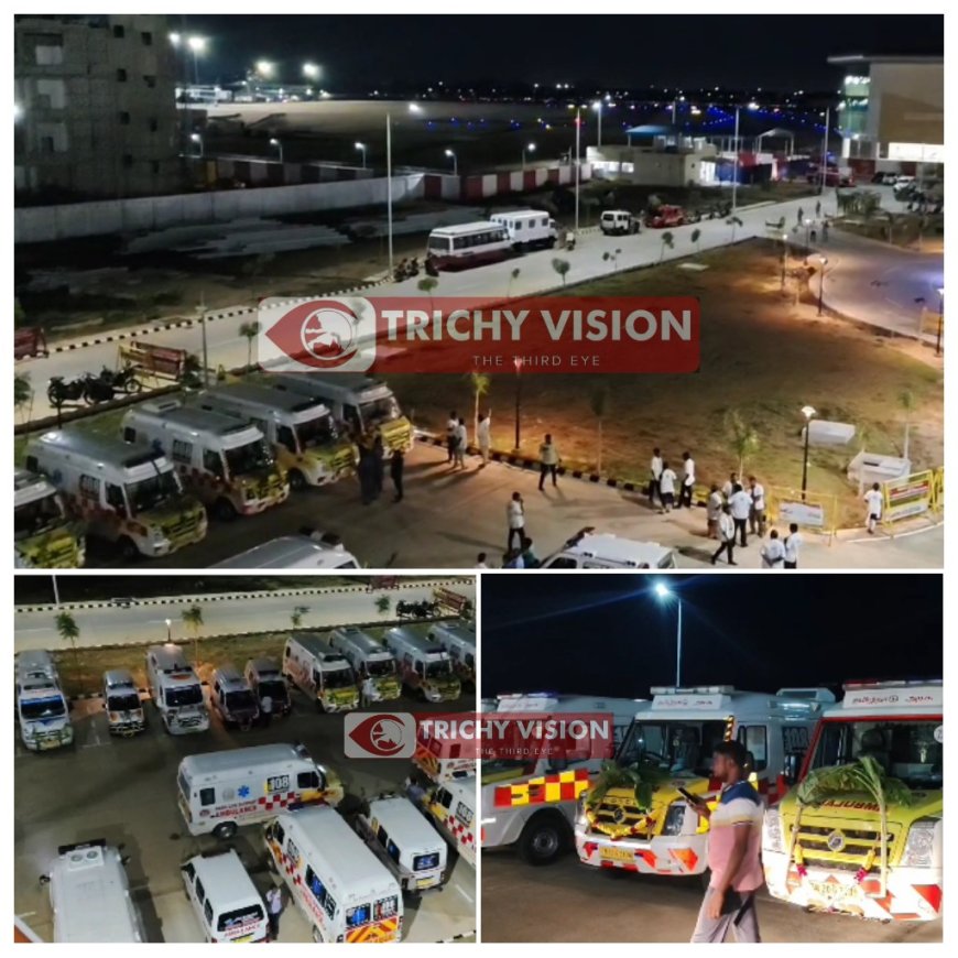 141 பயணிகளுடன் சென்ற விமானம் தொழில்நுட்பக் கோளாறு – திருச்சி விமான நிலையத்தில் குவிக்கப்பட்டுள்ள ஆம்புலன்ஸ் மற்றும் தீயணைப்பு வாகனங்கள்