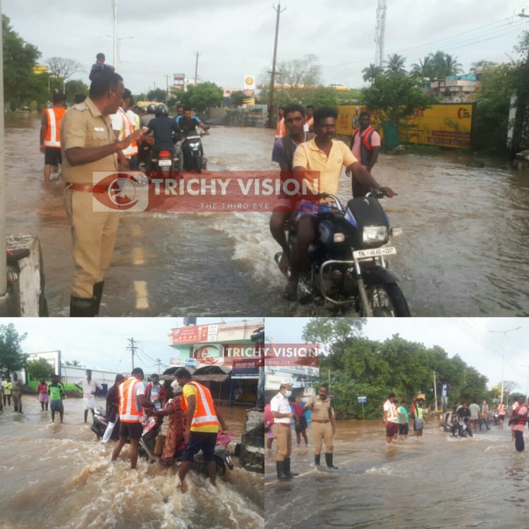 போக்குவரத்தை சீர் செய்யும் பணியில் போக்குவரத்து போலீசார் மற்றும் காவல்துறை மீட்பு குழுவினர் ஈடுபட்டு வருகின்றனர். தொடர்ந்து நீரின் வரத்து அதிகரிப்பதால் இப்பகுதிகளில் மின்சாரம் துண்டிக்கப்பட்டுள்ளது. மேலும் தீரன் நகர் பிராட்டியூர் உள்ளிட்ட பகுதியில் இருக்கும் பொதுமக்கள் அனைவரும் பத்திரமாக வெளியேற்றப்பட்டு வருகின்றனர்.