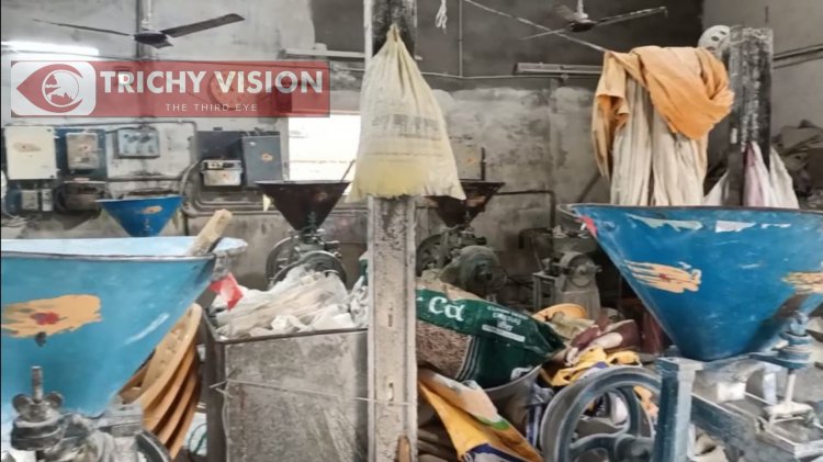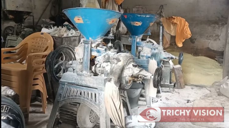 திருச்சி மாவட்டம் அரியமங்கலத்தில் அல்லா பிச்சை என்பவருக்கு சொந்தமான நாகூர் ஆண்டவர் மாவு மில்லில் ரேஷன் அரிசியை அரைத்து வந்திருப்பதாக வருவாய்த்துறை அதிகாரிகளுக்கு ரகசிய தகவல் கிடைத்தது. தொடர்ந்து பல புகார்கள் வர பெற்றதின் அடிப்படையில் மாவு மில்லில் வருவாய் கோட்டாட்சியர் பழனி குமார் திடீர் ஆய்வு மேற்கொண்டார்.
