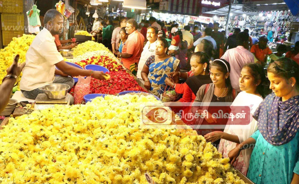 அதேநேரம், பொங்கல் பண்டிகையை முன்னிட்டும், தொடர்மழை மற்றும் பனியின் காரணமாக திருச்சி காந்திசந்தைக்கு பூக்களின் வரத்து குறைந்ததால் திருச்சி காந்திசந்தை பூமார்க்கெட்டில் பூக்கள்விலை பலமடங்கு உயர்ந்தது.