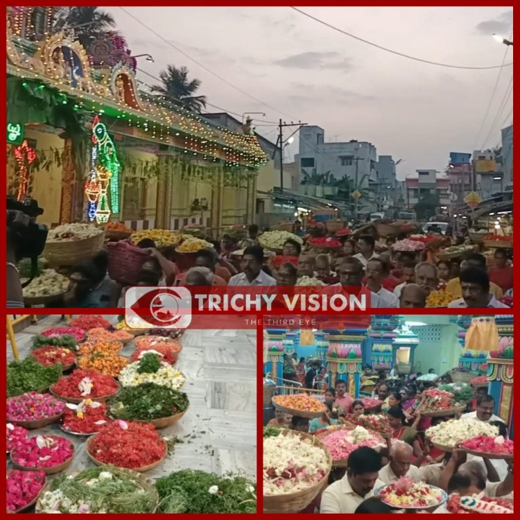 அதனைத்தொடர்ந்து பக்தர்கள் கொண்டுவரும் பூக்கள் அனைத்தும் அம்மனுக்கு சாத்தப்பட்டது. ஆயிரக்கணக்கான பக்தர்கள் நீண்ட வரிசையில் நின்று அம்மனுக்கு கூடைகளில் பூக்களைக் கொண்டுவந்து சாத்தி வழிபாடு செய்தும், விளக்குகளை ஏற்றியும் வழிபாடு செய்துவருகின்றனர். அதேநேரம் அம்மனுக்கு சாத்தபட்ட பூக்கள்யாவும் பக்தர்களுக்கு பிரசாதமாக அளிக்கப்பட்டுவருகிறது.
