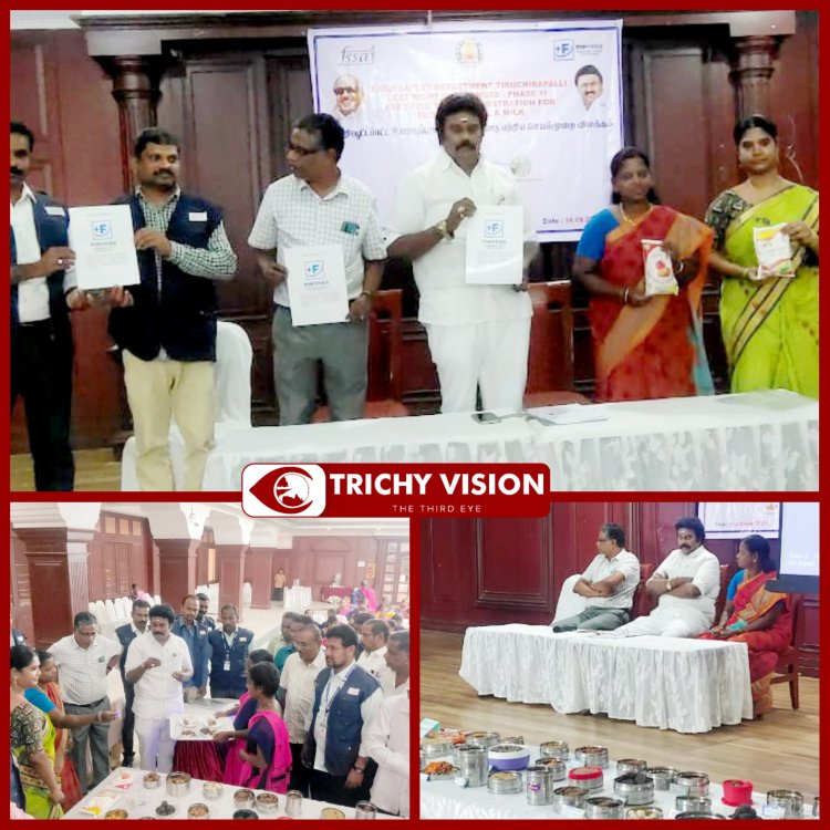 இன்று (14.09.2022) திருச்சிராப்பள்ளி மாவட்டம் உணவு பாதுகாப்பு துறையின் சார்பாக Food Fortification (உணவு செறிவூட்டல்) நிகழ்ச்சி நடைபெற்றது. இந்நிகழ்ச்சியில் மாவட்ட நியமன அலுவலர் உணவு பாதுகாப்பு துறை திரு.டாக்டர்.R.ரமேஷ்பாபு, M.B.B.S.,அவர்கள் தலைமையில் நடைபெற்ற இந்நிகழ்ச்சியில் திருமதி.ஜெகதீஸ்வரி உணவு செறிவூட்டல் மாநில ஒருங்கிணைப்பாளர் அவர்கள் சிறப்புரையாற்றினார். மேலும் Food Fortification குறித்து செயல்முறை விளக்கம் அளித்துள்ளார்.