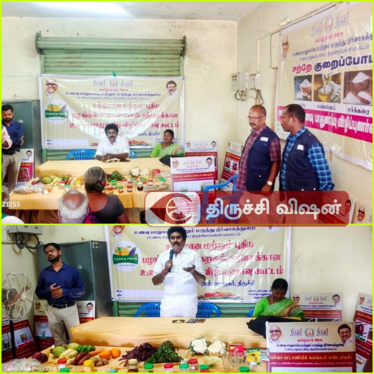 திங்கள்கிழமை திருச்சி உழவர் சந்தை பகுதியில் உள்ள விவசாய மக்களுக்கு மாண்புமிகு முதலமைச்சர் அவர்களின் சட்டமன்ற அறிவிப்பின்படி நேற்று சற்றே குறைப்போம் திட்டம், உணவு கலப்பட விழிப்புணர்வு முகாம் மற்றும் FOSTAC பயிற்சி நடைபெற்றது.