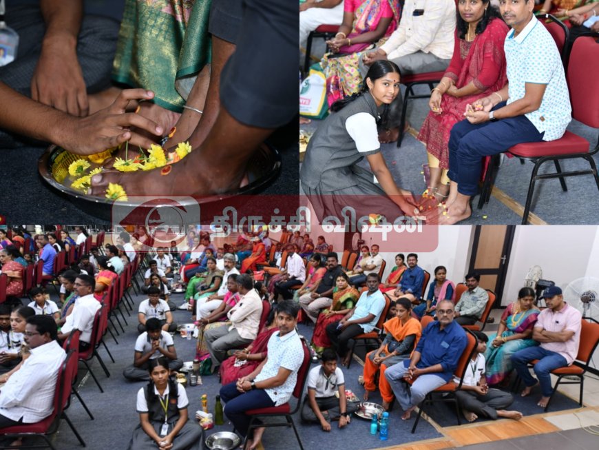 கூத்தூர் ஸ்ரீ விக்னேஷ் வித்யாலயா மேல்நிலைப்பள்ளியில் உள் விளையாட்டு அரங்கத்தில் பத்தாம் வகுப்பு மாணவர்களுக்கான பாத பூஜை நிகழ்வு நடைபெற்றது. இந்நிகழ்வில் பள்ளியின் தாளாளர் கோபிநாதன், அறங்காவலர் லட்சுமி பிரபா, இயக்குனர் வரதராசன், ஆலோசகர் மலர்விழி, பள்ளி முதல்வர் தயானந்தன், துணை முதல்வர் சுஜாதாமற்றும் ஆசிரியப் பெருமக்கள் முன்னிலையில் பத்தாம் வகுப்பு பயிலும் மாணவ, மாணவியர் தங்களின் பெற்றோர்களுக்கு பாத பூஜை செய்தனர்.