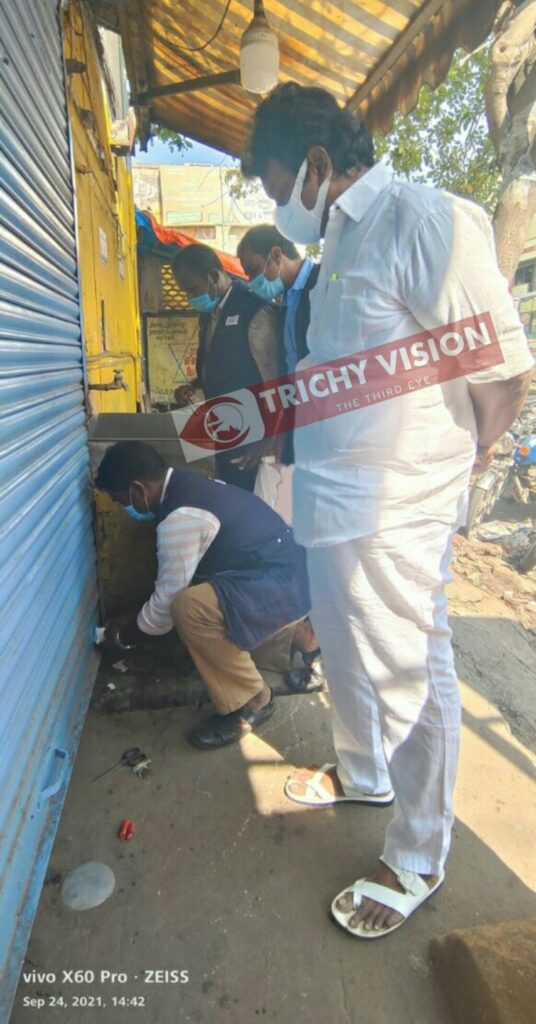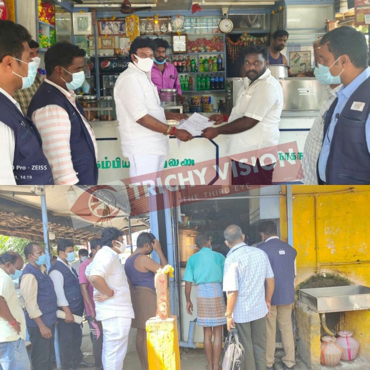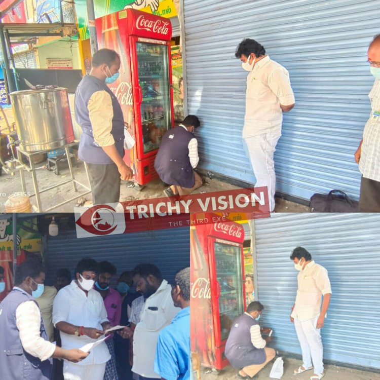 ஸ்ரீரங்கம் காவல் நிலையம் அருகில் உள்ள நாகநாதர் டீ கடைக்கு ஆணையர் அவசர தடையானை உத்தரவு பெற்று உணவு பாதுகாப்பு துறை நியமன அலுவலர் மருத்துவர் ரமேஷ் பாபு உள்ளிட்ட அதிகாரிகள் இன்று (24.09.2021) சீல் வைத்துள்ளனர். மேலும் மருந்தகங்கள் உள்ளிட்ட கடையிலும் தொடர்ந்து சோதனை நடைபெற்றது.