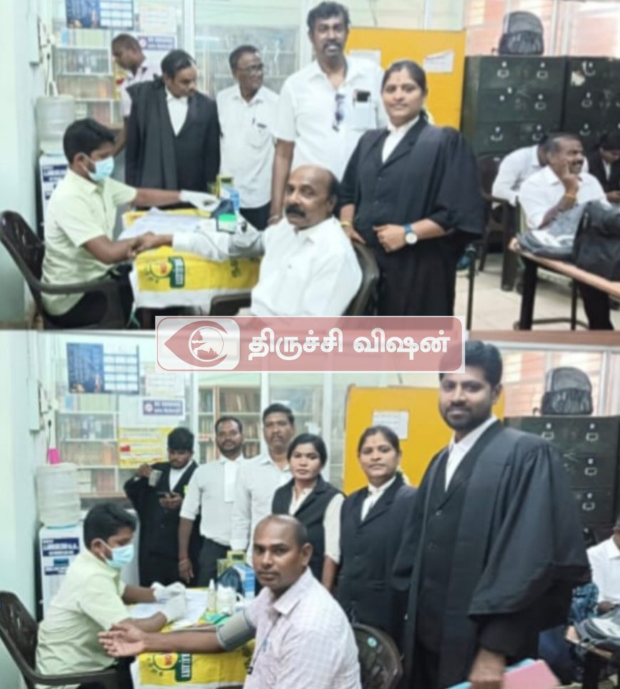 திருச்சி குற்றவியல் வழக்கறிஞர் சங்கத்தில் தமிழகத்திலே முதல்முறையாக துளசி பார்மசி உடன் இணைந்து அனைத்து மாதங்களிலும் முதல் வாரத்தில்nகட்டாயமாக இலவசமாக BP மற்றும் SUGAR பரிசோதனை மற்றும் ஆலோசனைகள் வழங்கும் முகாம்