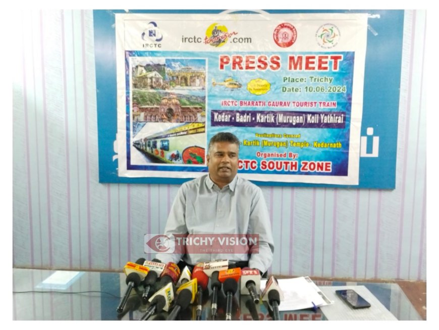 திருச்சி (IRCTC) தென் மண்டல குழு பொது மேலாளர் ராஜலிங்கம் வாசு இன்று திருச்சி பிரஸ் கிளப்பில் செய்தியாளர்களை சந்தித்தார். அதில் ஐ.ஆர்.சி.டி.சி சார்பாக Baharath Gavrau என்ற சுற்றுலா ரயில் இயக்கப்பட்டு வருகிறது. இந்த ரயிலின் பெயர் கேதார்நாத், பத்ரிநாத், கார்த்திக் சுவாமி கோவில் யாத்திரை என்ற பெயர் வைத்துள்ளோம். இந்த ரயிலின் சிறப்பு அம்சங்கள் என்பது இந்த ரயிலில் பயணம் செய்யும் பயணிகளுக்கு ஹெலிகாப்டர் டிக்கெட்டையும் சேர்த்து இணைத்துள்ளோம்.