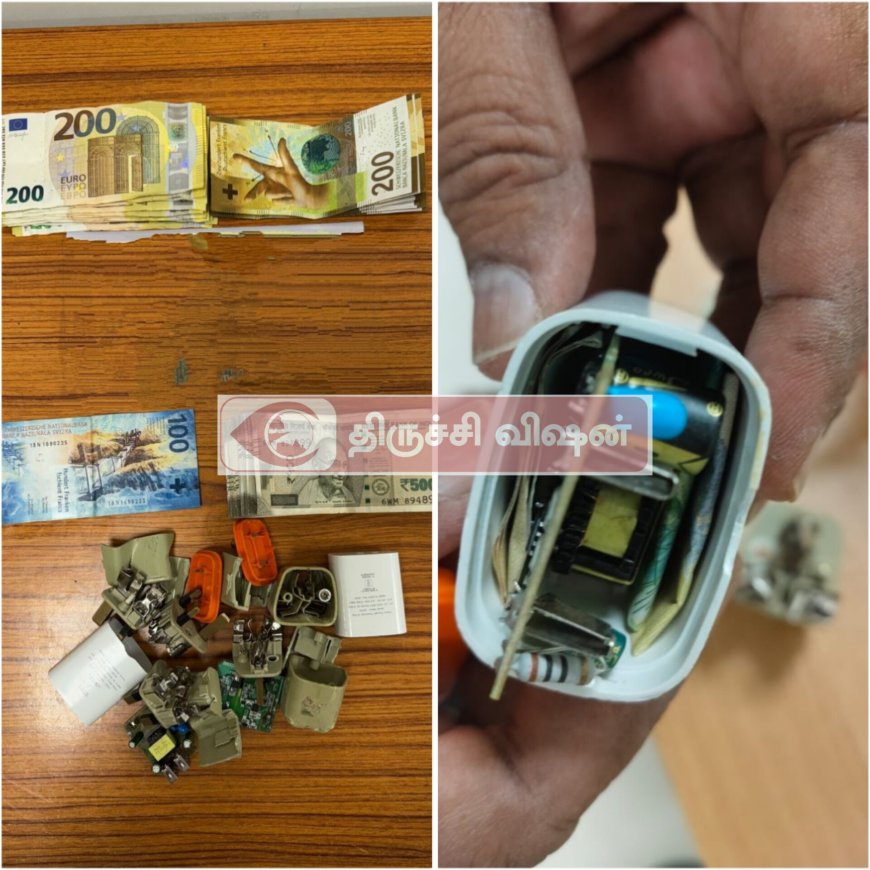 திருச்சி விமான நிலையத்தில் மொபைல் போன் சார்ஜரில் மறைத்து வைத்து கடத்திய 4 லட்சத்து 96 ஆயிரத்து 450 ரூ மதிப்புள்ள வெளிநாட்டு கரன்சி பறிமுதல்