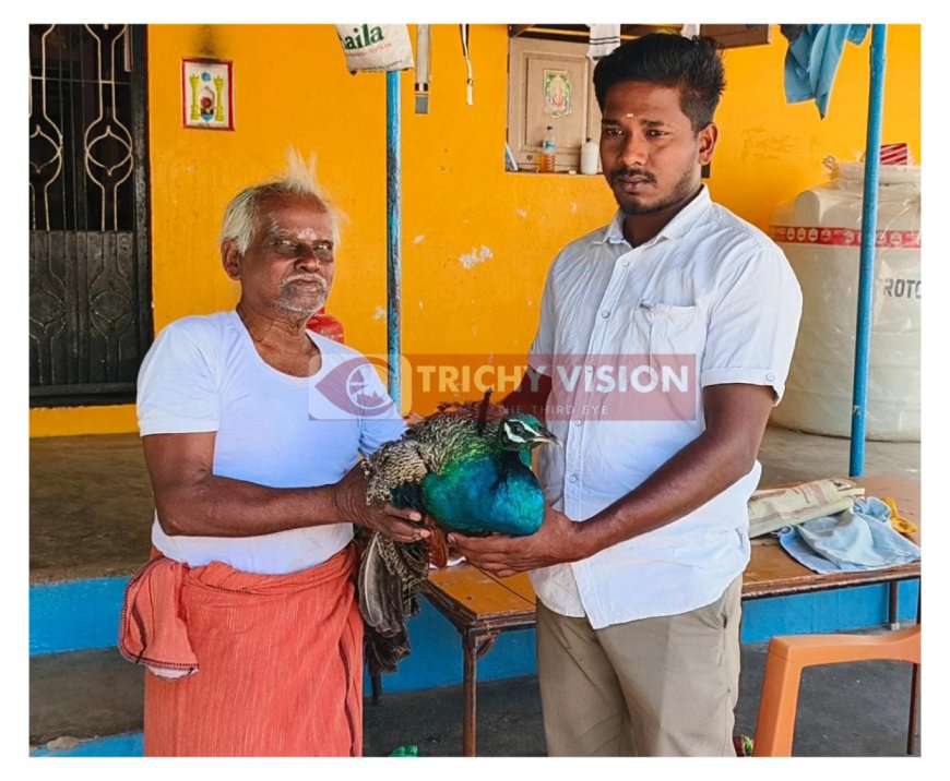 அதனைதொடர்ந்து வனத்துறையினருக்கு தகவல் தெரிவிக்கப்பட்டு மயிலை பத்திரமாக வனத்துறையினரிடம் ஒப்படைத்தனர்.