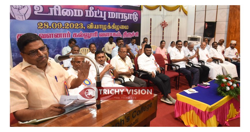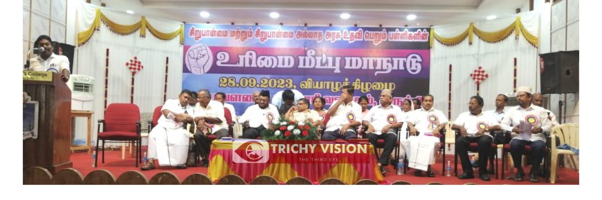 சிறுபான்மை மற்றும் சிறுபான்மை அல்லாத அரசு உதவி பெறும் பள்ளிகளின் உரிமை மீட்பு மாநாடு திருச்சி தூய வளனார் கல்லூரியில் நடைபெற்றது. இந்நிகழ்ச்சியில் சிறப்பு விருந்தினராக நீதியரசர் அரி பரந்தாமன் கலந்து கொண்டார். இம்மாநாட்டில் நீதியரசர் பேசுகையில்….. இது ஒரு வித்தியாசமான கூட்டமாக உள்ளது. இங்கு இருக்கக்கூடிய அரசு உதவி பெறும் பள்ளிகளின் நிர்வாகிகள் அனைவரும் ஒன்று சேர்ந்துள்ளனர். அதுவே ஒரு அரிதான நிகழ்ச்சியாகும். இந்து, கிறிஸ்தவ, இஸ்லாமிய அமைப்புகளின் மூலமாக அரசு உதவி பெறும் பள்ளிகளை நடத்தும் நிர்வாகிகள் தான் உண்மையான கல்வியாளர்கள்.