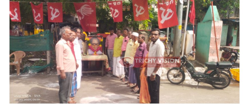 இந்தியக் கம்யூனிஸ்ட் கட்சி திருச்சி மாநகர் மாவட்ட மேற்குப் பகுதி குழு சார்பாக மக்கள் தலைவர் தோழர் எம். கல்யாணசுந்தரம். Ex.M.P பிறந்தநாள் இன்று (20.10.2024) ஞாயிற்றுக்கிழமை 8வது வார்டு பாண்டமங்கலத்தில் வார்டு எண் 8, 9, 10 சார்பாக பிறந்தநாள் விழா மாமன்ற உறுப்பினர் தோழர் க.சுரேஷ், கட்சியின் மாநகர் மாவட்ட செயலாளர் தோழர் எஸ். சிவா ஆகியோர் முன்னிலையில் மலர் தூவி மரியாதை செலுத்தப்பட்டு கொண்டாடப்பட்டது.