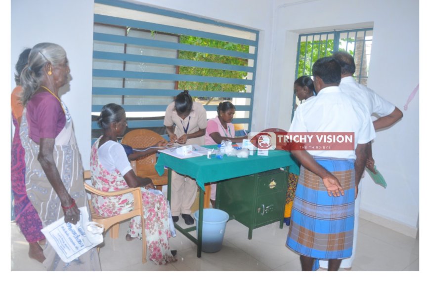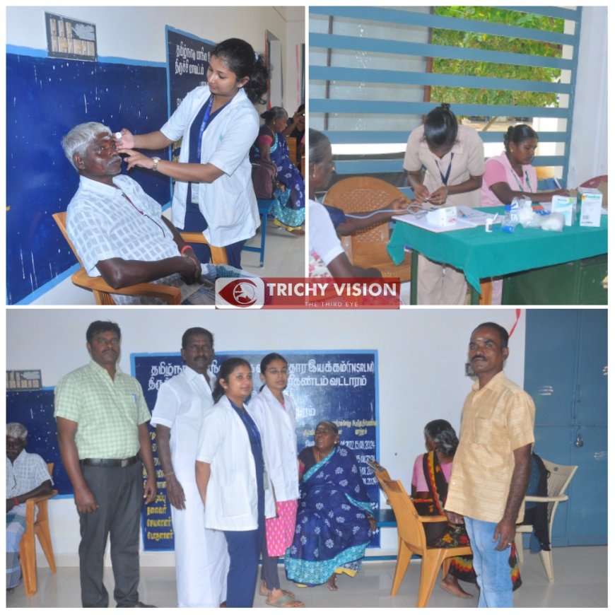 திருச்சி எஸ்.ஆர்.எம் மருத்துவ கல்லூரி மருத்துவமனை மற்றும் ஆராய்ச்சி மையம் மற்றும் திருச்சி மாவட்ட பார்வை இழப்பு தடுப்பு சங்கம் சார்பில் மாபெரும் இலவச கண் பரிசோதனை (IOL) லென்ஸ் இலவசமாக பொருத்து முகாம் நடைபெற்றது. திருச்சி மணிகண்டம் ஒன்றியம் பாகனூர் ஊராட்சி மன்ற அலுவலகத்தில் அப்பகுதியைச் சேர்ந்த மக்களுக்கு பரிசோதனைகள் செய்யப்பட்டன.