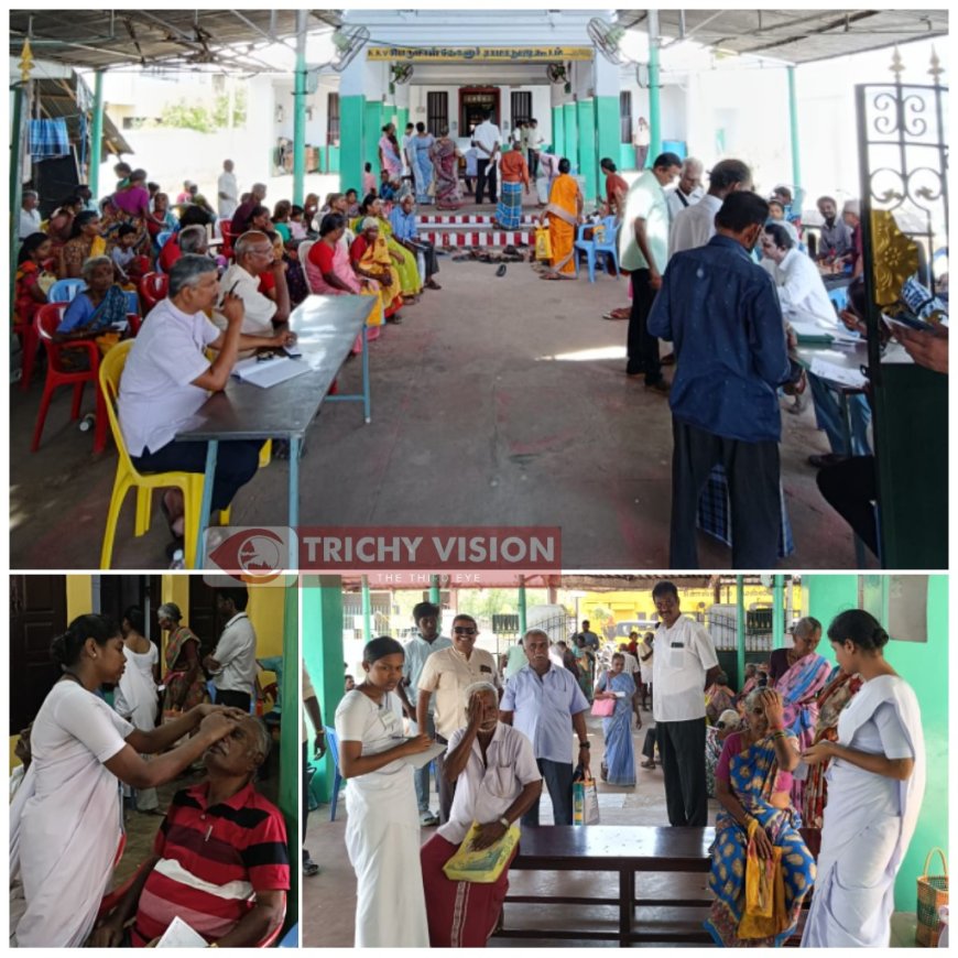 ரோட்டரி கிளப் ஸ்ரீரங்கம் மற்றும் மதுரை அரவிந்த் கண் மருத்துவமனை இணைந்து நடத்திய கண் இலவச சிகிச்சை முகாம்