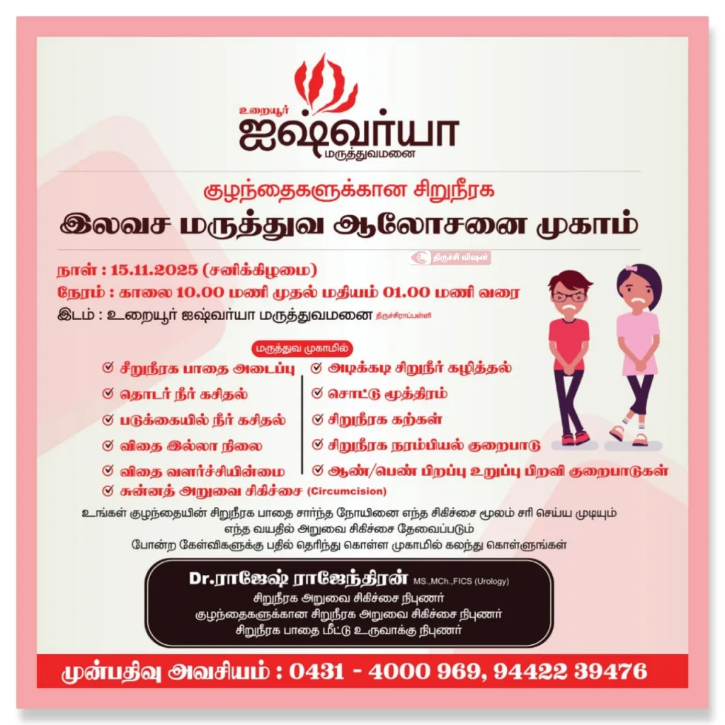 முன்பதிவு அவசியம் போன்: 0431-4000969, 9500943969, 9442239476