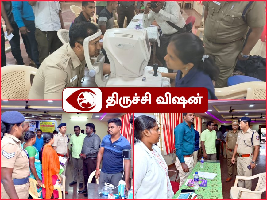 திருச்சி சுப்ரமணியபுரம் ஆயுதப்படை திருமண மண்டபத்தில் காவலர்களுக்கான இலவச மருத்துவ முகாம் காலை 10 மணி முதல் மாலை 4 வரை நடைபெறுகிறது. காவலர் மற்றும் அவர்கள் குடும்பத்தினருக்கு இலவச மருத்துவ முகாம் துளசி பார்மசி ஏற்பாடு செய்திருந்தது.
