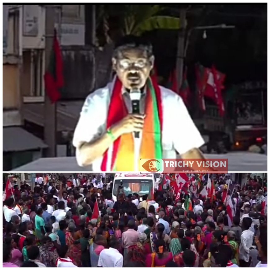 திருச்சி மாவட்டம் வாளசிராமணி பகுதியில் பெரம்பலூர் தொகுதி ஐஜேகே வேட்பாளர் டாக்டர் பாரிவேந்தர் ஆதரவு திரட்டினார். அப்போது பேசிய அவர், தான் செய்த பணிகள் குறித்து Progress Report போல தொகுதி மக்களுக்கு புத்தகமாக வழங்கி உள்ளதாக குறிப்பிட்டார். இந்த புத்தகத்தை நீங்கள் படித்தீர்களானால் தனக்கு 100க்கு 100 மதிப்பெண்கள் போடுவீர்கள் என கூறினார். எம்.பி தொகுதி நிதியான 17 கோடி ரூபாயில் 42 வகுப்பறைகள், சமூக கூடங்கள், ரேசன் கடை, உள்ளிட்டவை கட்டி கொடுத்து உள்ளதாக கூறினார். தேர்தலில் நல்லவர்களை தேர்ந்தெடுக்க வேண்டும் எனவும் தமிழ்நாட்டு அரசியல் வாதிகள் அனைவரும் ஊழல்வாதிகள் என குற்றஞ்சாட்டினார். மோடி ஒரு யோகி என்றும் நாட்டு மக்கள் நன்றாக இருக்க வேண்டுமென அவர் உழைத்து கொண்டிருப்பதாகவும் டாக்டர் பாரிவேந்தர் புகழாரம் சூட்டினார்.
