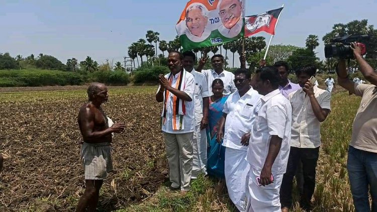 இலால்குடி சட்டமன்ற தொகுதியில் அதிமுக கூட்டணி சார்பில் த.மா.க வேட்பாளர் தருமராஜ் தீவிர வாக்கு சேகரிப்பில் ஈடுபட்டு வருகின்றார். இதன் ஒருபகுதியாக இலால்குடி ஒன்றியம் திருமங்கலம் கிராமத்தில் உள்ள விவசாயிகளை சந்தித்து வாக்கு சேகரித்தார்.