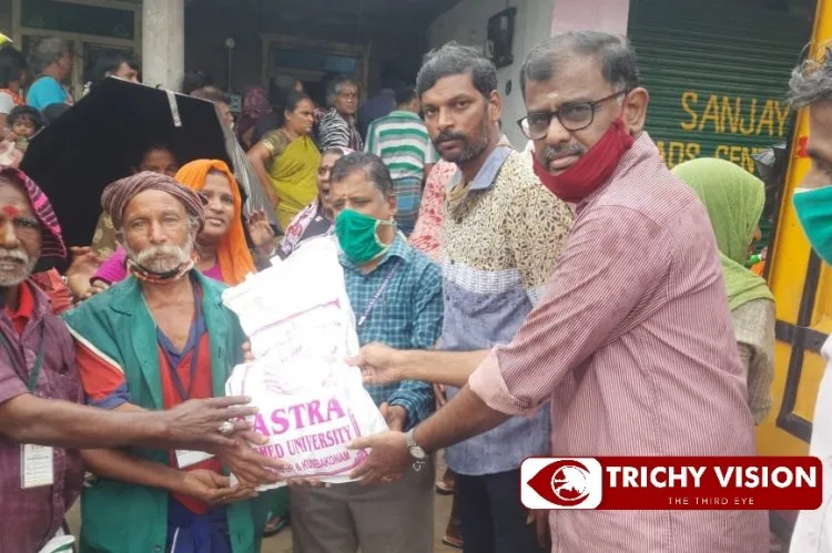 தொடர்ந்து 21வது ஆண்டாக சாஸ்த்ரா பல்கலைக்கழகம் சுற்றியுள்ள பகுதிகளான திருமலைசமுத்திரம், வல்லம்புதூர், மொன்னயம்பட்டி, குருவாடிப்பட்டி மற்றும் தேவராயனேரி ஆகிய கிராம மக்களுக்கு இலவச பொங்கல் தொகுப்பு வழங்கினர்.