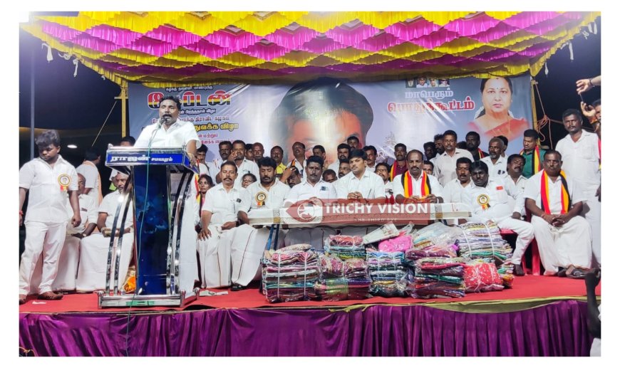 தொடர்ந்து ஐநூறு ஏழை எளிய மக்களுக்கு இலவச வேட்டி, சேலை உள்ளிட்ட பல்வேறு நலத்திட்ட உதவிகள் வழங்கப்பட்டது. முன்னதாக மண்ணச்சநல்லூர் கிழக்கு ஒன்றிய செயலாளர் வி.பி.டி தங்கமணி வரவேற்று பேசினார். இறுதியாக பிச்சாண்டார்கோவில் ஊராட்சி கழக செயலாளர் ஐயப்பன் நன்றி தெரிவித்தார்.