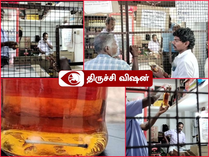இந்த டாஸ்மாக் கடையில் வாங்கிய பாட்டிலில் உள்ள மதுவை குடித்து இறந்தால் என் குடும்பத்தை யார் பார்ப்பது? எனவும் இதுபோல் மது பிரியர்களை அரசு ஏன் இப்படி வஞ்சிக்கின்றது என கூறியுள்ளார். இதற்கு தமிழக அரசு நடவடிக்கை எடுக்குமா? இதுகுறித்து திருச்சி மாவட்ட ஆட்சித்தலைவரை சந்தித்து புகார் கொடுப்பதாகவும் தெரிவித்துள்ளார் .