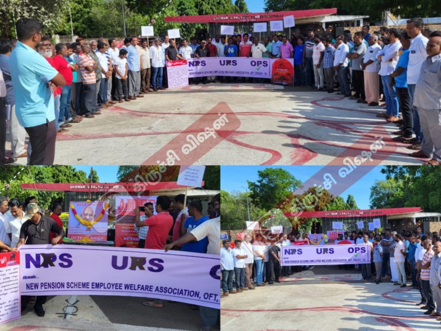 திருச்சி திருவெறும்பூர் அருகே உள்ள படைகலன் தொழிற்சாலைகளில் எம்ப்ளாயீஸ் யூனியன் சார்பில் காந்தி ஜெயந்தி விழாவை முன்னிட்டு மத்திய அரசு பழைய பென்ஷன் திட்டத்தை அமல்படுத்த கோரி போராட்டத்தில் ஈடுபடும் சங்களுக்கு ஆதரவாக செயல்படுவது என உறுதிமொழி எடுத்துக் கொண்டனர்.