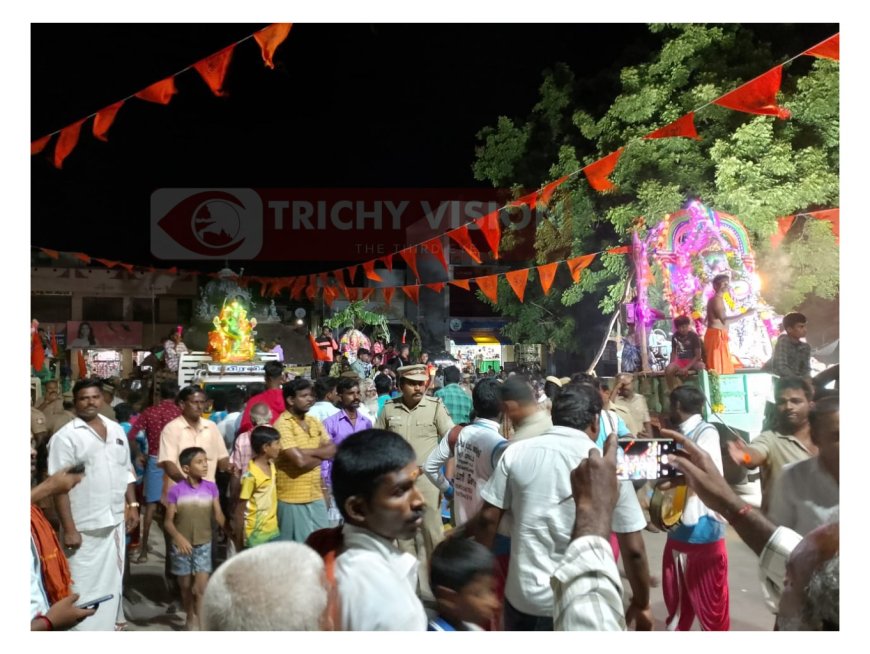 நிகழ்ச்சியில் இந்து முன்னணி நிர்வாகிகள் கண்ணன், பிரேம்குமார், விமல் பாண்டியன், ராஜேஷ், திருப்பதி, அரங்கநாதன் உள்ளிட்ட பலர் கலந்து கொண்டனர்.விழாவை முன்னிட்டு திருச்சி போலீஸ் எஸ். பி வருண்குமார் மேற்பார்வையில் ஏடிஎஸ்பிகள் சுப்பையன், கோடிலிங்கம், 10 டிஎஸ்பி, 20 இன்ஸ்பெக்டர்கள், 47 சப் இன்ஸ்பெக்டர்கள் உள்பட 676 போலீசார் பலத்த பாதுகாப்பில் ஈடுபட்டனர்.