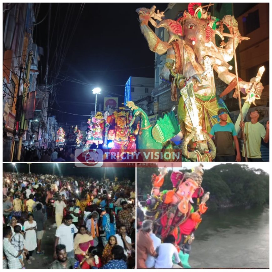 விநாயகர் சதுர்த்தி விழா நேற்று முன்தினம் கோலாகலமாக கொண்டாடப்பட்டது. திருச்சி மாநகரத்துக்குட்பட்ட பகுதிகளில் பல்வேறு இடங்களில் விநாயகர் சிலை வைக்கப்பட்டு மூன்று நாட்கள் பூஜை நடைபெற்று வந்தது.