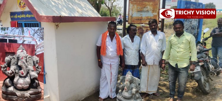 திருச்சி மாநகர பிராட்டியூர் பகுதி நுழைவாயிலில் நேற்று( 13/3/22 ) சுமார் 4 அடி அகலம் 6 அடி உயரமுள்ள பிள்ளையார் கோயில் உள்ளே இருந்த இரண்டடி உயரமுள்ள பிள்ளையார் கற்சிலையை மர்ம நபர்கள் இடுப்புவரை உடைத்து எடுத்துச் சென்றுள்ளனர். இதுகுறித்து அமர்வு நீதிமன்ற காவல் சரகம் போலீசார் விசாரணை செய்து வந்தனர்.