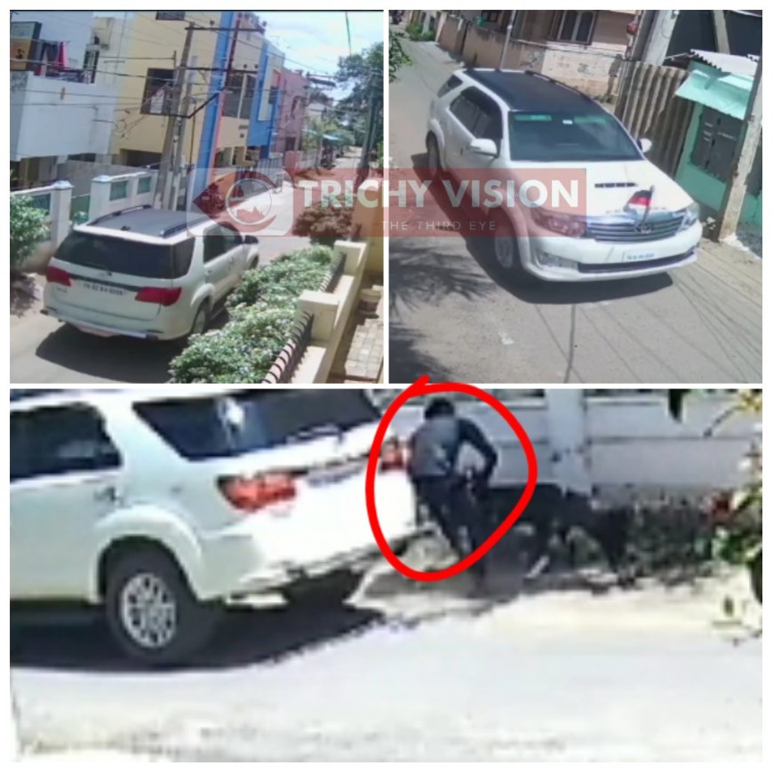 இந்த காட்சி தற்பொழுது பெரும் பரபரப்பை ஏற்படுத்தி உள்ளது.(திமுக) கொடி போட்ட ஃபார்ச்சூனர் காரில் வந்தவர்கள் மூன்று பேர் யார் என்பது போலீசார் பிடித்த உடன் தான் தெரியவரும்.