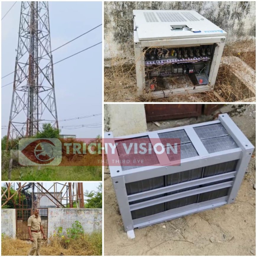 செய்து தப்பிச் சென்ற மர்மநபர்கள் குறித்து விசாரணை செய்து வந்தார். ஏற்கெனவே இந்த செல்போன் டவரில் மரம் நபர்கள் 6 முறை திருடிச் சென்றுள்ளனர். 7 வது முறையாக திருட முயன்ற போது அலாரம் மணி ஒலித்ததால் சம்பவ இடத்திற்கு வந்த போலீசாரைக் கண்டதும் தப்பிச் சென்றனர். வழக்கமாக தீபாவளி, பொங்கல் போன்ற விழாக்காலங்களில் திருடி வந்த மர்ம நபர்கள் இந்தமுறை முன்னேற்பாடாக ஆயுதபூஜைக்கு திருட முயன்று போலீசாரைக் கண்டதும் அங்கிருந்து தப்பிச் சென்றனர்.