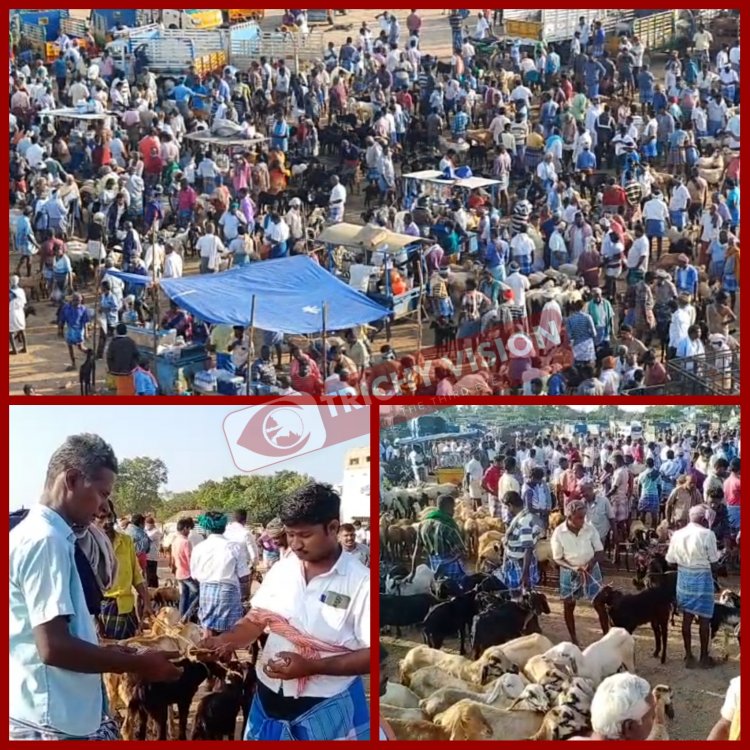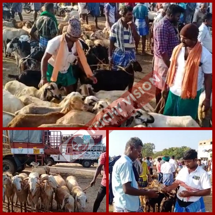 திருச்சி மாவட்டம், சமயபுரம் பேரூராட்சி பகுதியில் பிரதி வாரம் சனிக்கிழமை நடைபெறும் ஆடுகள் வாரச் சந்தை வரும் பொங்கல் பண்டிகையினை முன்னிட்டு நடைபெற்றதால் ஆடுகள் வரத்து குறைவாக வந்ததாலும் ,விற்பனை மந்தமாக நடைபெற்றது.